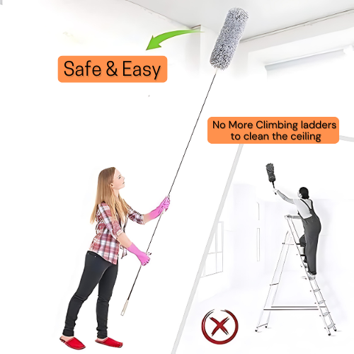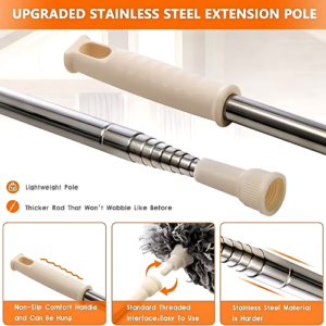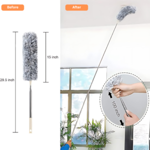 Versatile Cleaning Tool: This mop with an adjustable long handle is ideal for cleaning various high surfaces, including ceiling fans, light fixtures, and air vents. It’s an essential tool for any home cleaning kit.