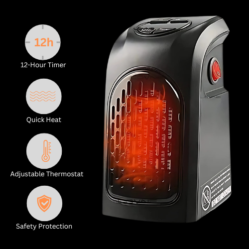 Compact Design: This 400W portable heater is ideal for small rooms like offices, bedrooms, and living rooms.